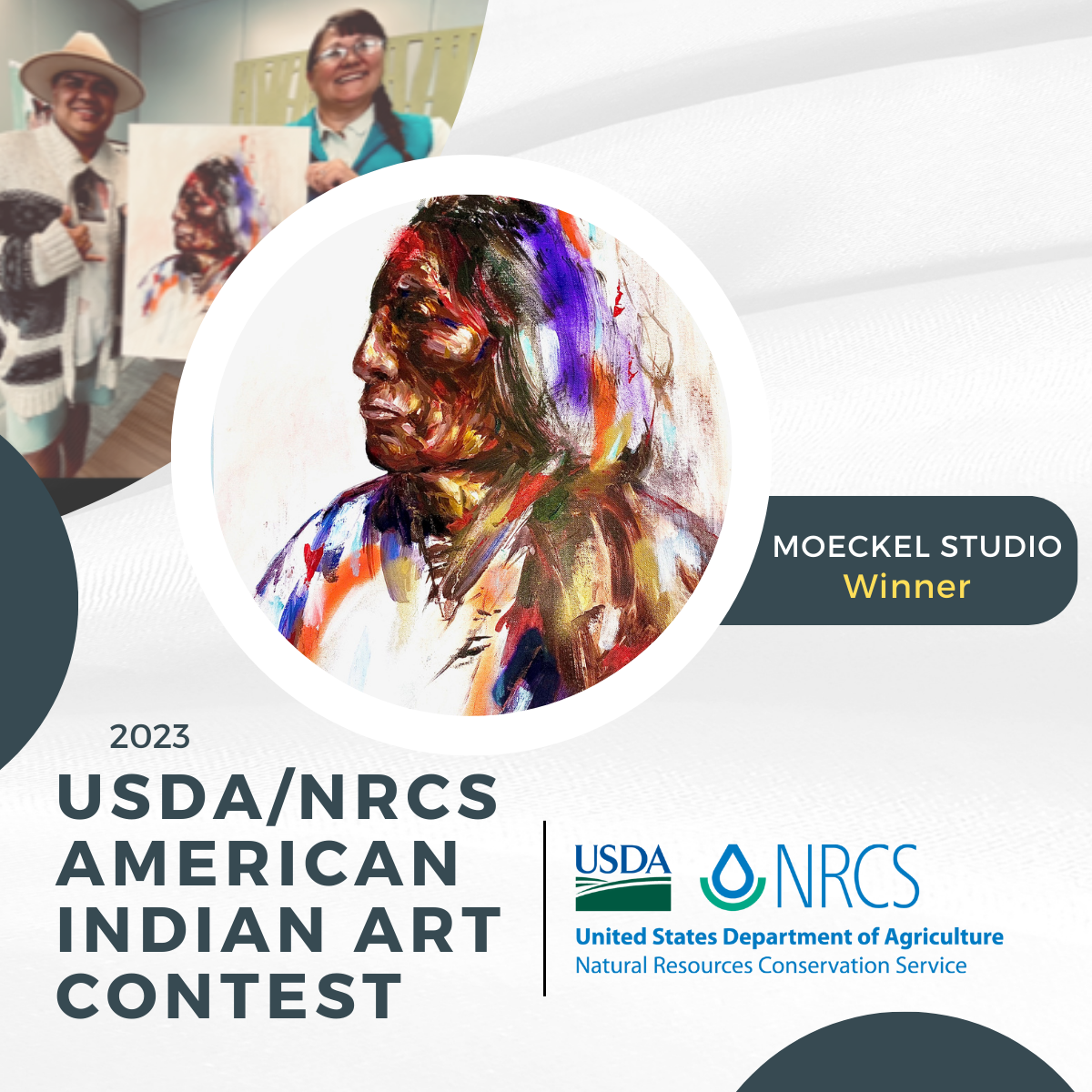 Sonny and Lisa were awarded first place in the NNDF juried art show and People’s Choice Award, 2019. The artist duo were finalists in the 2021 Spokane Arts Awards in the category of “collaboration” and more recently winner of the the USDA/NRCS American Indian Art Contest in November 2023. THEY WERE ALSO NOMINATED IN 2025 FOR BY SPOKANE ARTS IN THE CATEGORY OF “ARTS ADVOCACY” FOR THEIR WORK IN THE COMMUNITY.